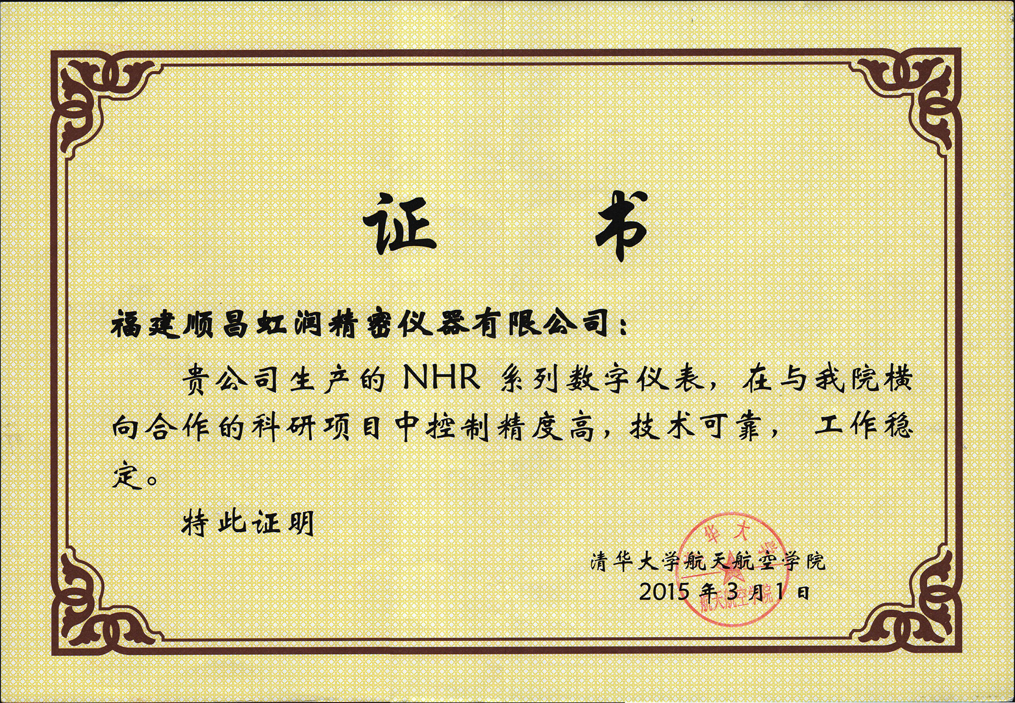 近日,由虹潤公司生產的自動化顯示控制儀表產品,成功應用于清華大學航空航天學院橫向合作科研項目,因控制精準,抗干擾性強,運行穩定,受到了清華大學航空航天學院科研項目組的廣泛好評,并向虹潤公司頒發了證書。