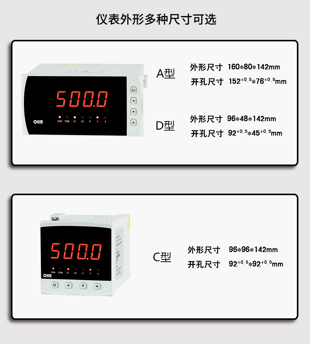 OHR-C200系列交流電壓/電流表為新 一代可編程智能儀表,它采用大規(guī)模集成電路,應(yīng)用數(shù)字采樣技術(shù),對(duì)單相電氣線(xiàn)路中的電壓、電流進(jìn)行實(shí)時(shí)測(cè)量、顯示和控制,并通過(guò)RS485接口或模擬量變送輸出接口對(duì)被測(cè)量電量數(shù)據(jù)進(jìn)行遠(yuǎn)傳。