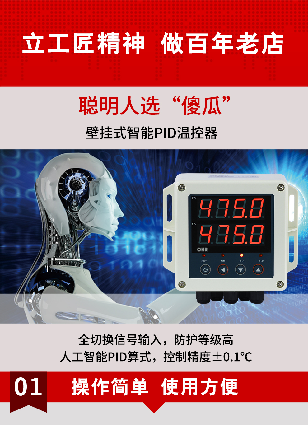 虹潤(rùn)公司是專(zhuān)業(yè)生產(chǎn)溫控器的國(guó)家專(zhuān)精特新“小巨人”企業(yè)。生產(chǎn)的壁掛式PID溫控器,具有全切換信號(hào)輸入,真正人工智能算式,控制精度達(dá)士0.1°C,防護(hù)等級(jí)高,RS485通訊輸出DN等特點(diǎn)。產(chǎn)品獲得模糊PID控制儀及控制方法、人工智能調(diào)節(jié)器、智能化控制器、移相觸發(fā)控制器、閥門(mén)自動(dòng)手動(dòng)無(wú)擾動(dòng)操作控制方法及裝置等5項(xiàng)國(guó)家發(fā)明專(zhuān)利,主持起草主持起草工業(yè)過(guò)程控制系統(tǒng)用模擬輸入兩位或多位輸出儀表、物聯(lián)網(wǎng)智能溫度儀表通用技術(shù)條件、工業(yè)過(guò)程測(cè)量和控制系統(tǒng)用智能調(diào)節(jié)器等3項(xiàng)國(guó)家標(biāo)準(zhǔn),以及通信系統(tǒng)多通道數(shù)據(jù)采集控制終端規(guī)范軍用標(biāo)準(zhǔn)。參與國(guó)際5G標(biāo)準(zhǔn)制定,取得傻瓜式PID調(diào)節(jié)儀等3項(xiàng)相關(guān)軟件著作權(quán)。產(chǎn)品廣泛應(yīng)用于電力、石化,冶金、制藥、食品等幾乎所有工業(yè)現(xiàn)場(chǎng),實(shí)現(xiàn)精準(zhǔn)控溫,保障生產(chǎn)安全與質(zhì)量。
