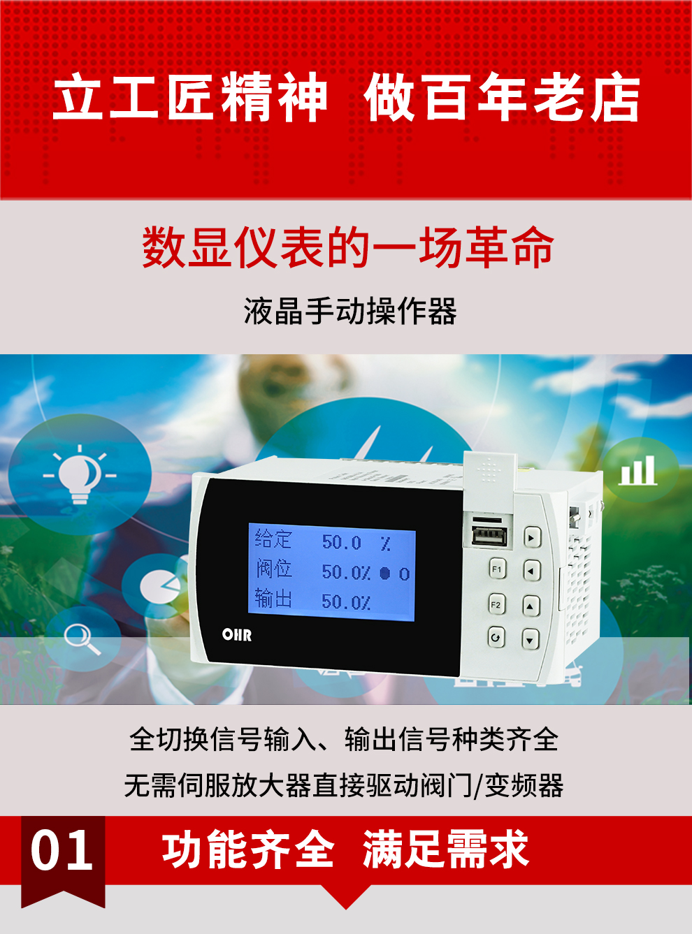 虹潤公司是專業生產智能手操器的國家專精特新“小巨人”企業,生產的液晶手動操作器,具有全切換信號輸入,通道之間相互隔離,手自動無擾動切換配上位機管理軟件等特點。產品獲得閥門自動手動無擾動操作控制方法及裝置、模糊PID控制儀及控制方法、移相觸發控制器等3項國家標準,主持起草工業過程控制系統用模擬輸入兩位或多位輸出儀表、流程工業中電氣/儀表和控制系統的試車等2項國家標準,以及通信系統多通道數據采集控制終端規范軍用標準,參與國際5G標準制定,取得手動操作器等3項相關軟件著作權。產品廣泛應用于電力、石化、冶金、化工、造紙、食品、輕工、制藥、熱處理、水處理、機械配套等各種工業現場。