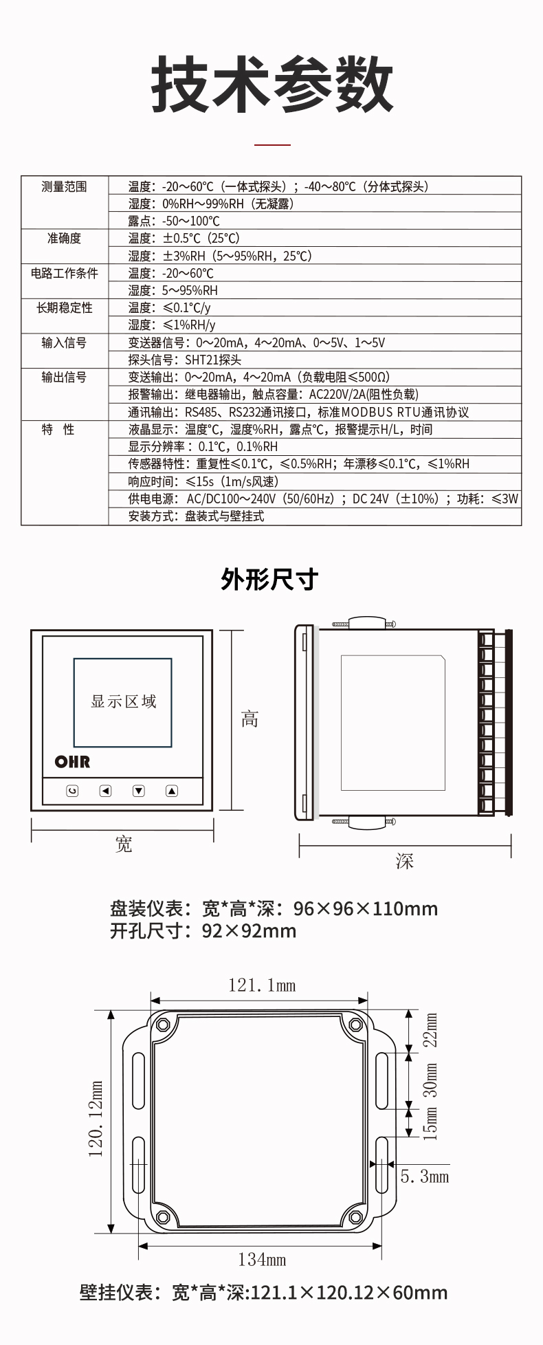 OHR-WS10C系列溫濕度控制儀